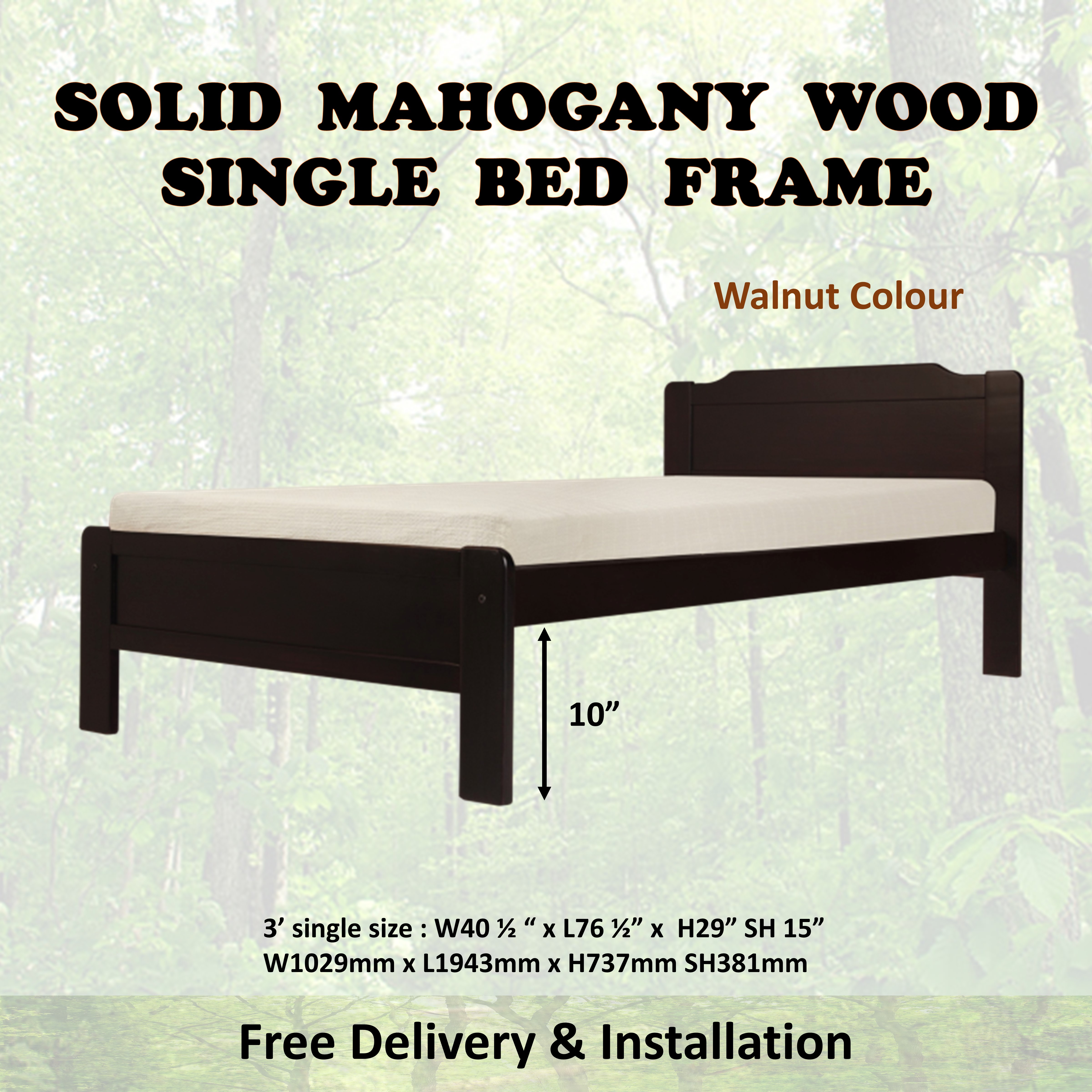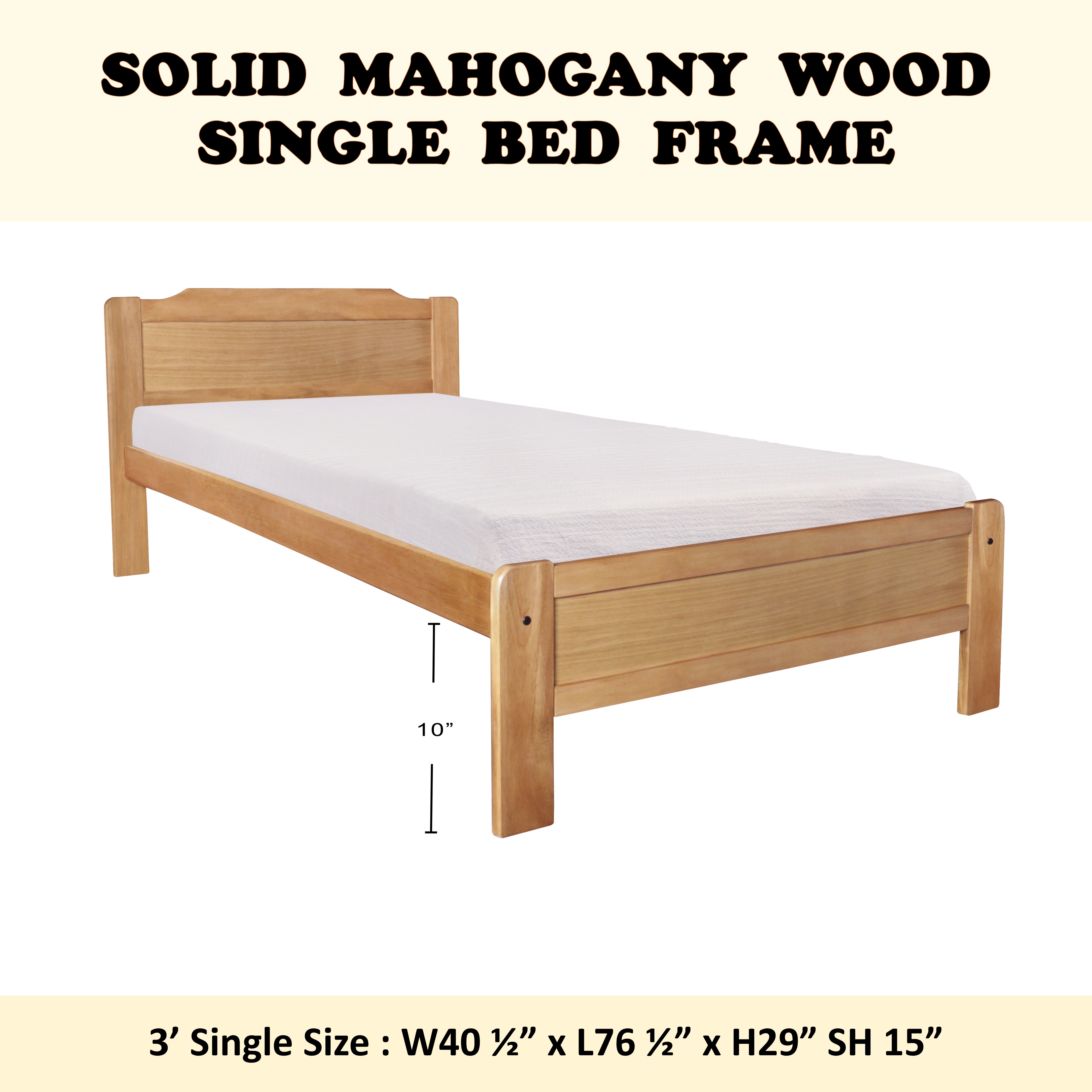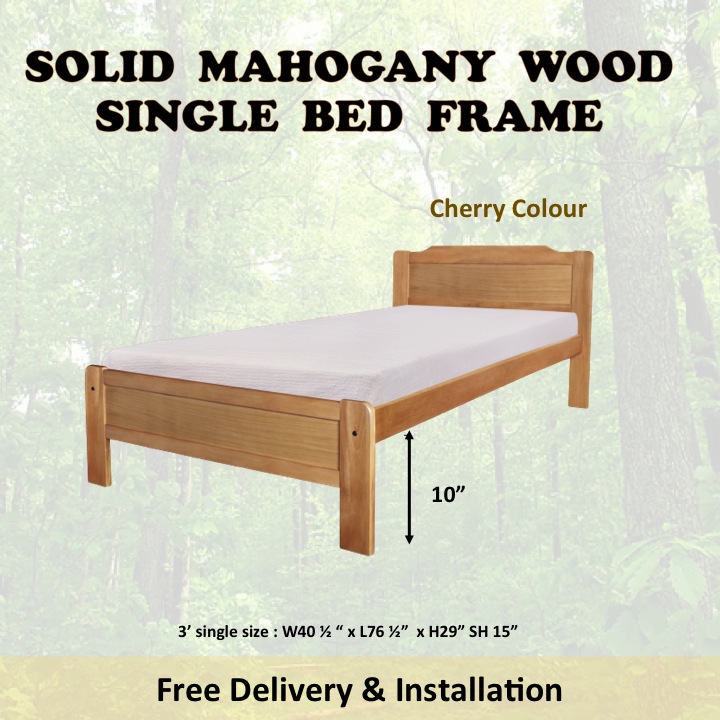HENRY Mahogany Solid Wooden Single / Super Single Bed Frame In Cherry & Walnut Color