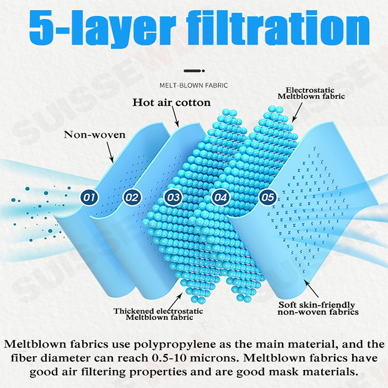 Suissewin Ready Stock 50Pcs KN95 Face Mask 5 Ply Disposable Mask Pm2.5 Dustproof Collapsible N95 Mask Soft Breathable Mask Anti Particle Masker Mouth Cover 5 Layers of Protection Mask