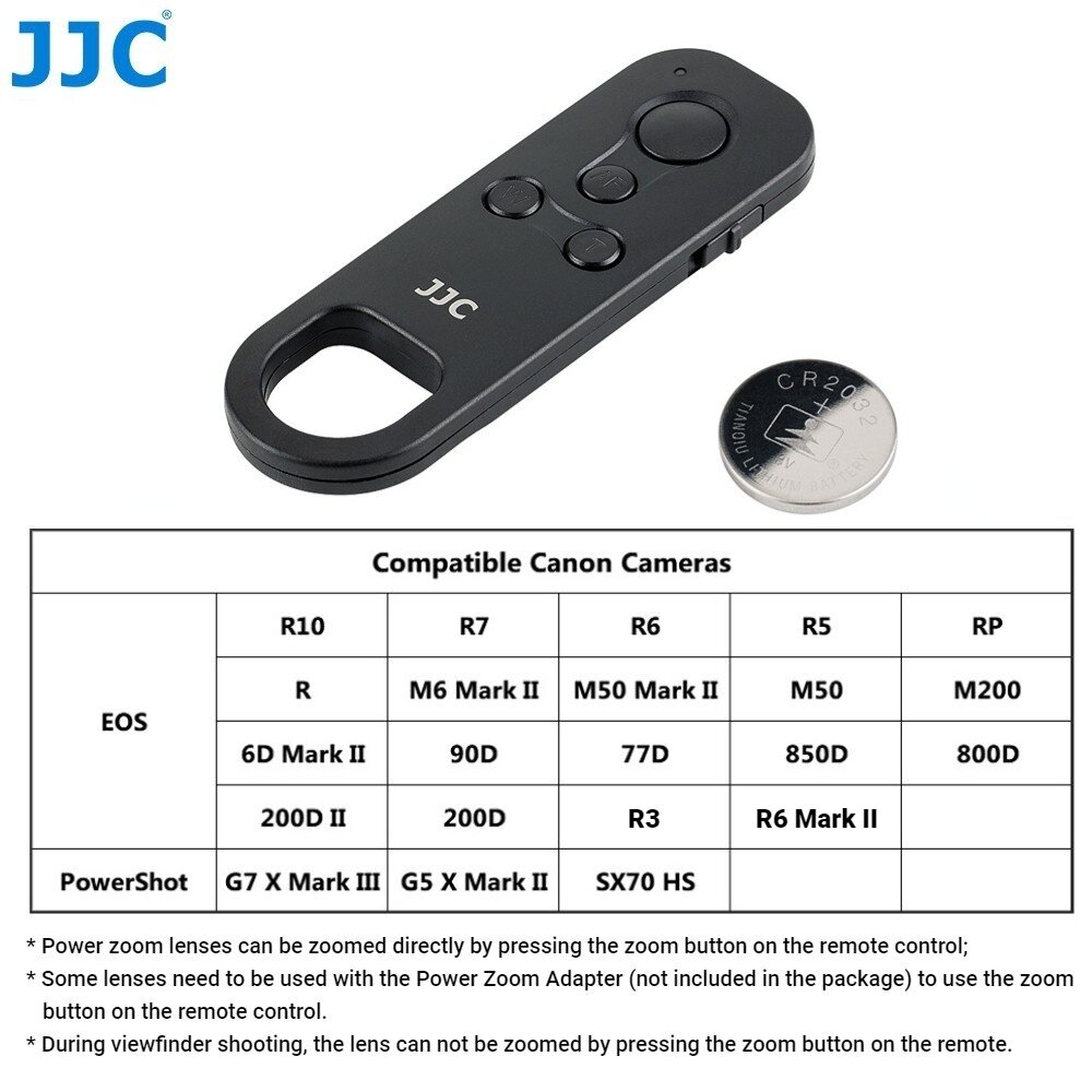 JJC BR-E1 Bluetooth Wireless Remote Control Shutter Release for Canon EOS R10 R7 R5C R3 R R5 R6 RP M50, M50 Mark II, 6D Mark II, M6 Mark II, M200, 90D 77D 200D II, 200D 850D 800D Powershot G7X Mark II