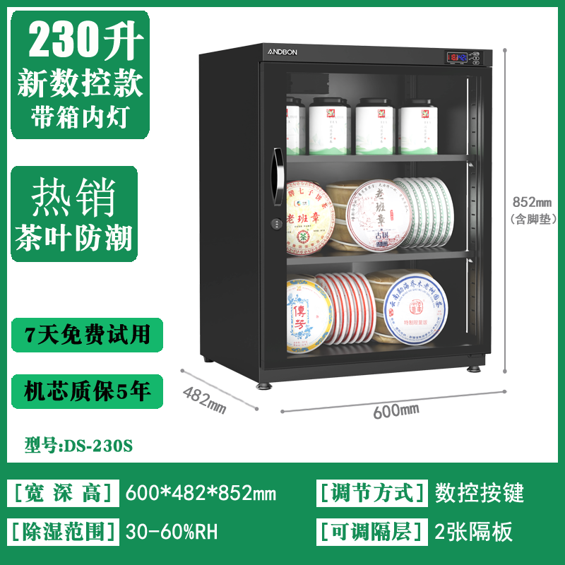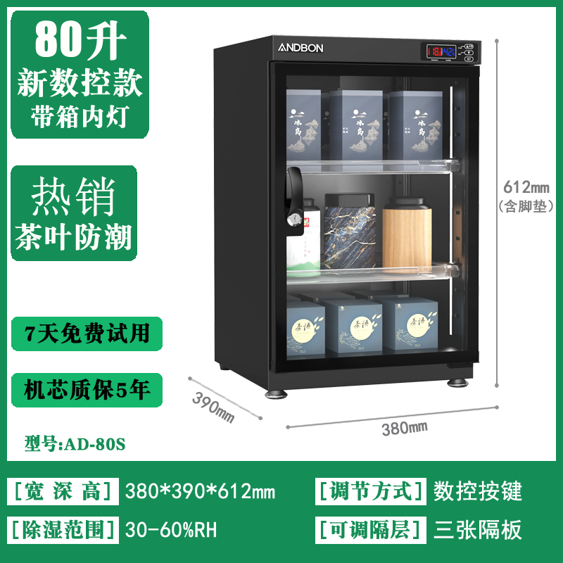 Andbao Tea Storage Cabinet White Tea Pu'er Red Green Tea Electronic Moisture-Proof Box Intelligent CNC Constant Humidity Drying Lens SLR Camera Capacitor Microphone Equipment 30/50/80/100/230/250L