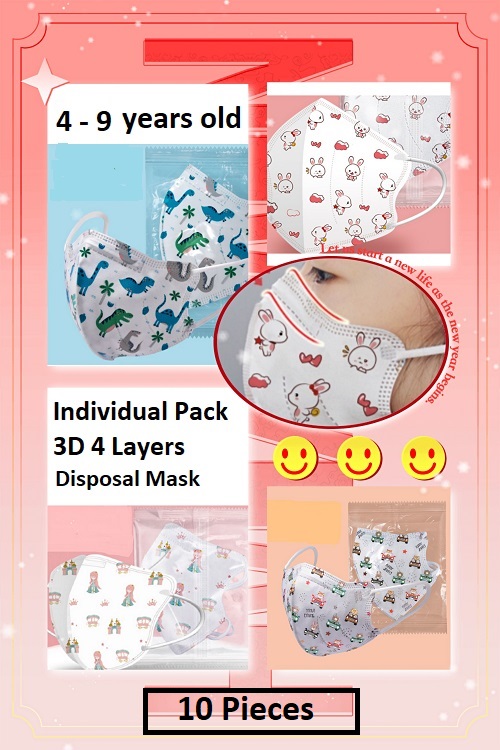 Individual Pack 3D 4 Layers Kids Face Disposal Mask (4 - 9 Years Old)