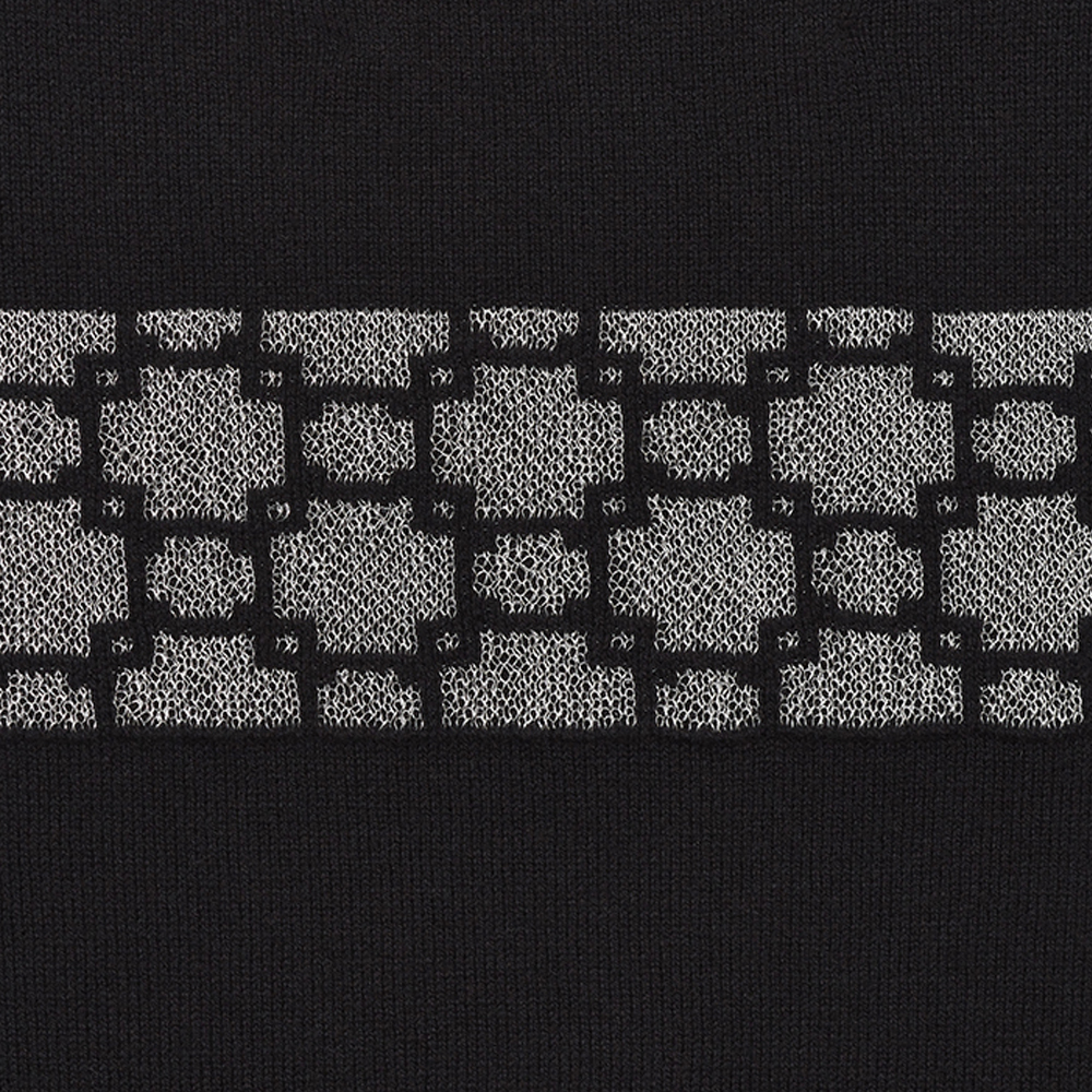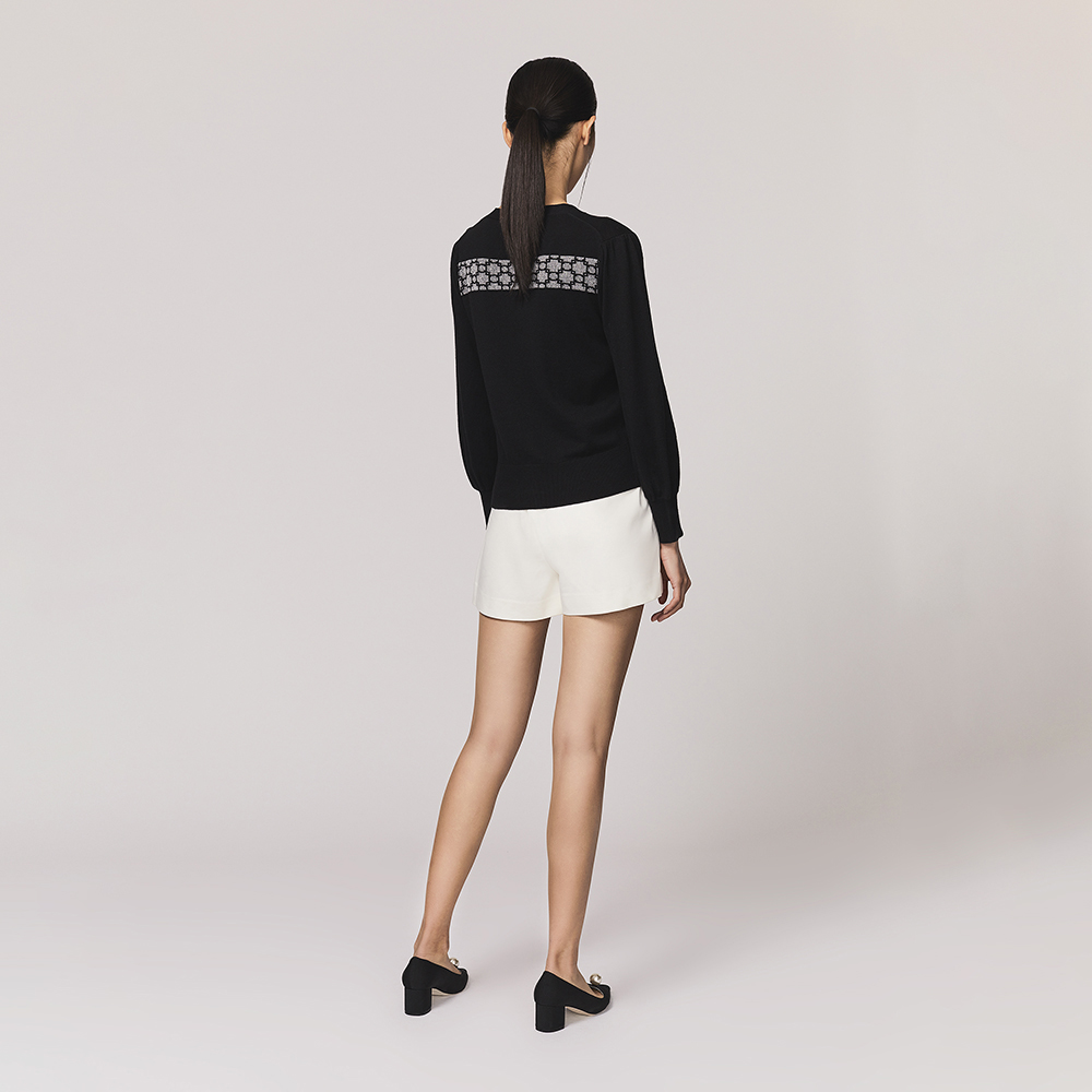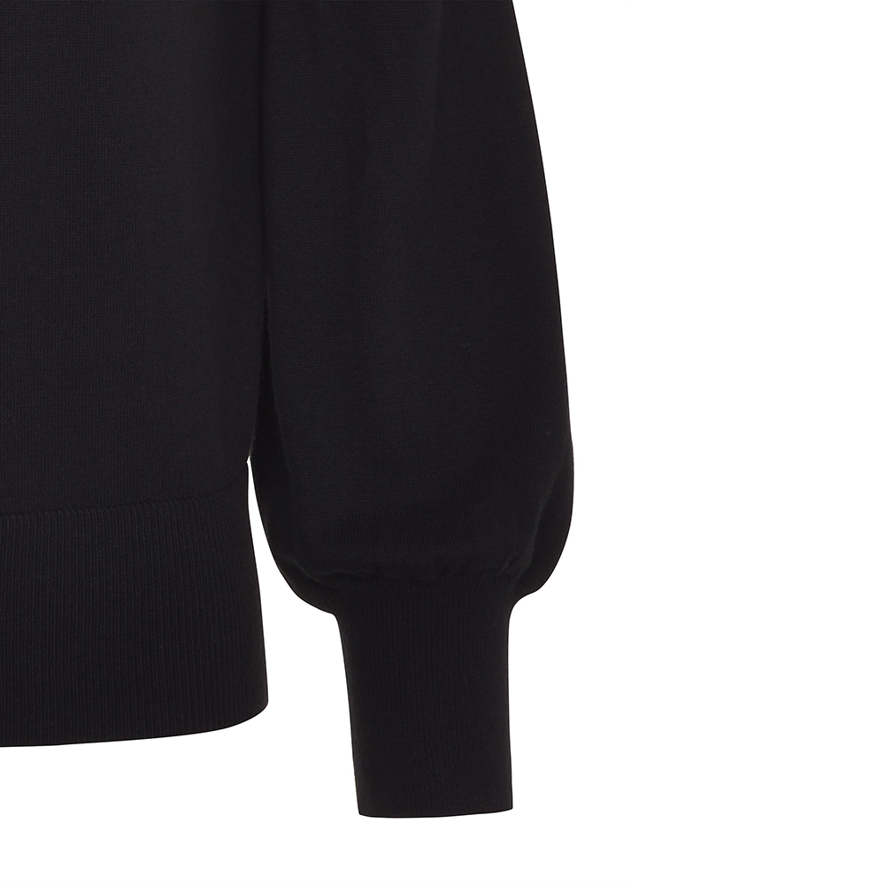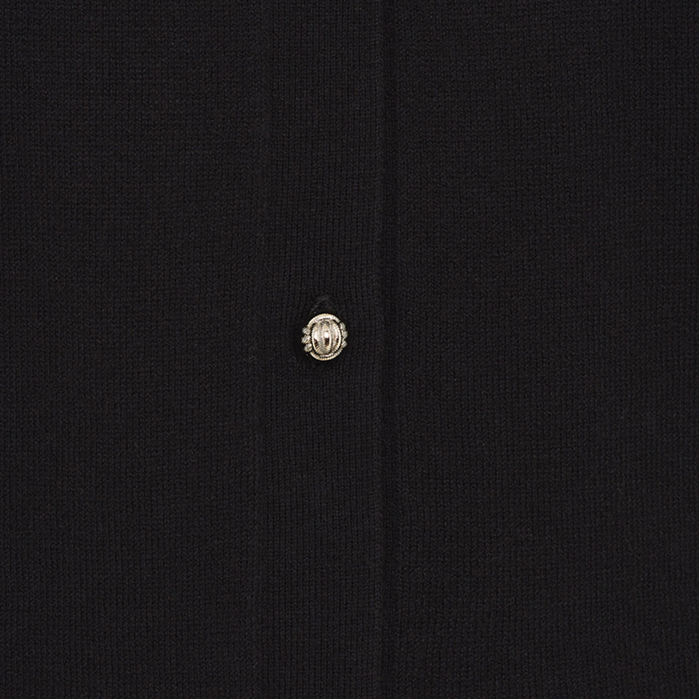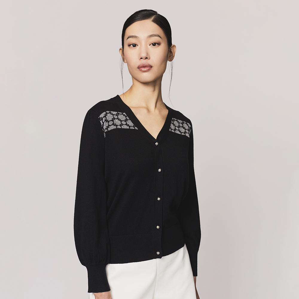 Shanghai Tang Window Jacquard Puff Sleeve Cotton Cashmere Women's Cardigan (Black)