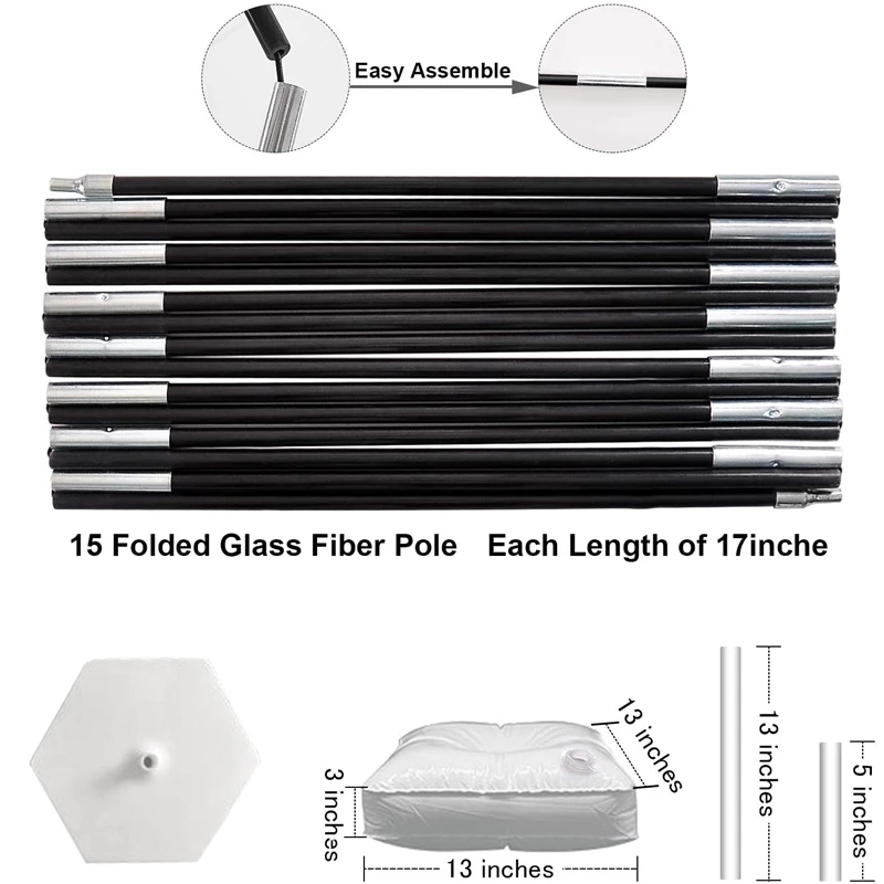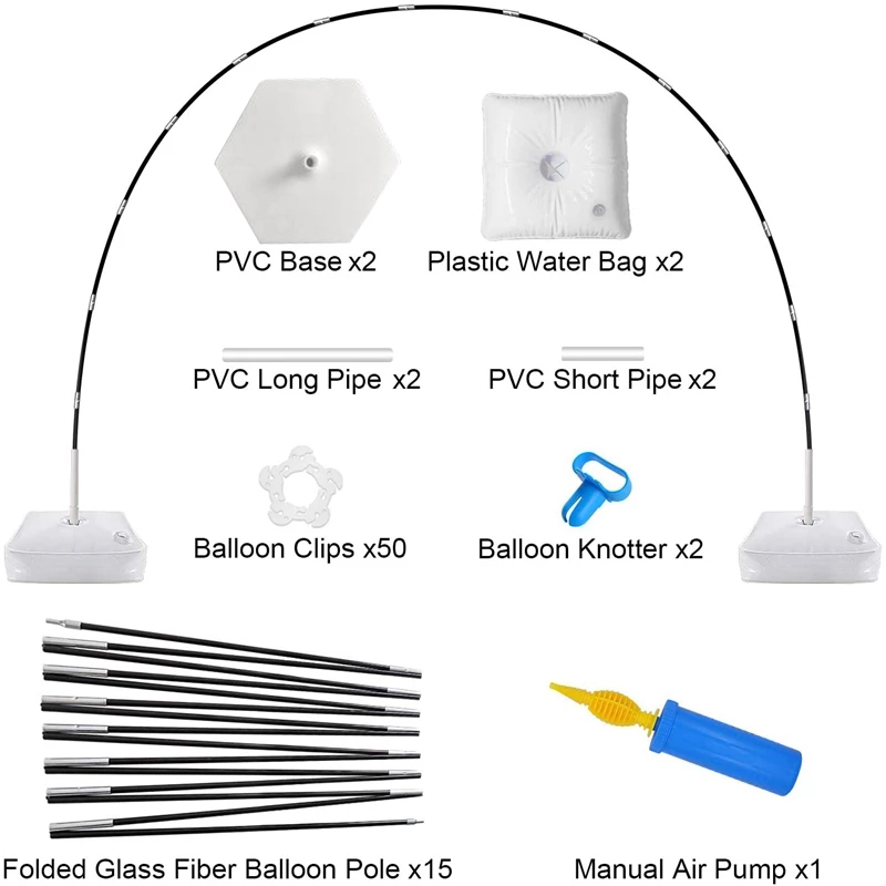 [HIGH QUALITY & STURDY]:Well-designed mesh base and water bag, stable PVC pipe.It will not shake sharply due to wind or object collision.The balloon pole is a folded integral accessory, with the single length is 17 inches high strength black glass fiber pole, bending is not easy to break,You can reuse it anywhere you want.