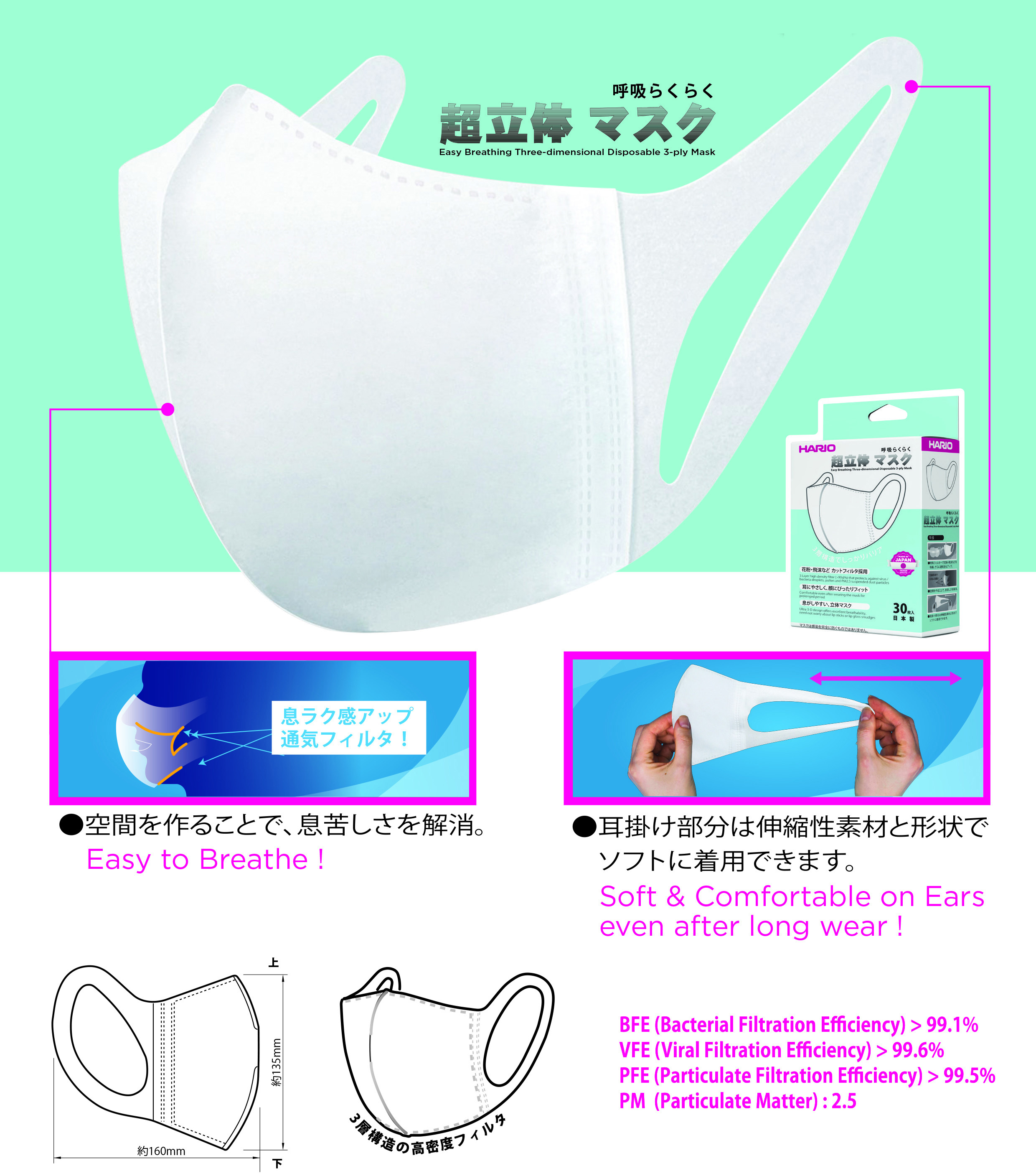- 3-ply High Density Filter (> 99.6%) : Effectively Protects Against Virus, Bacteria Droplets, Pollen & Pm2.5 Suspended Dust Particles- Gentle Comfort Front Fit : Comfortable Even After Wearing The Mask For Prolonged Period- Stylish Ultra 3-d Design : Offers Excellent Breathability, Need Not Worry About Lip Sticks Or Lip Gloss Smudges- Lightweight Soft Ear Strap : Soft & Stretchable, Easy On Ears , Greater Comfort When Wearing For Prolonged Period- Perfect Contours For Asian's Face : Minimises Gap Between The Mask & Face Compared To Other Conventional Designs- Strict Manufacturing Controls : Entire Production & Packing Of Masks Are Fully Automated, Hygienic & Safe, No Contamination- Ideal For Monthly Famiy Use- Color Gift Box Packaging- Premium Quality Made In Japan