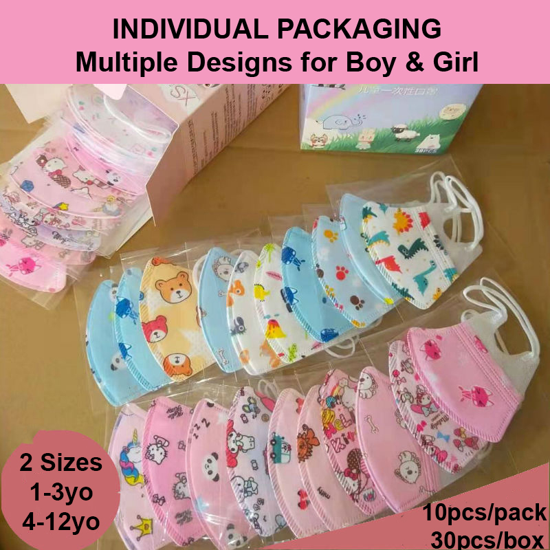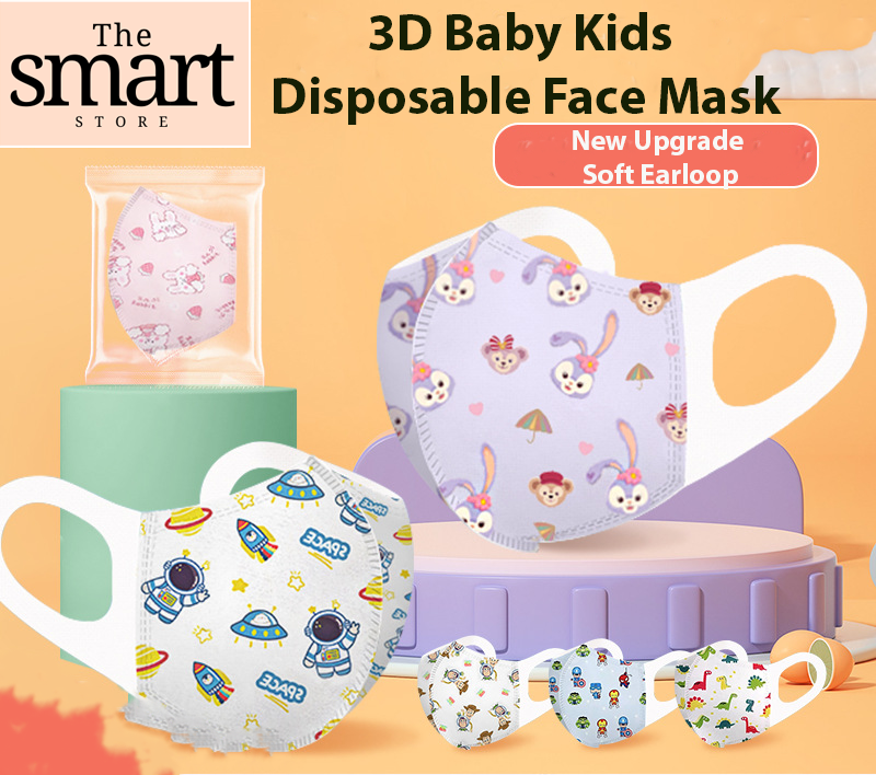[Local Seller] Individual Pack 3D Kids Baby Disposable Single Use Face Mask for Ages 1 and Up (From 1+ years old)