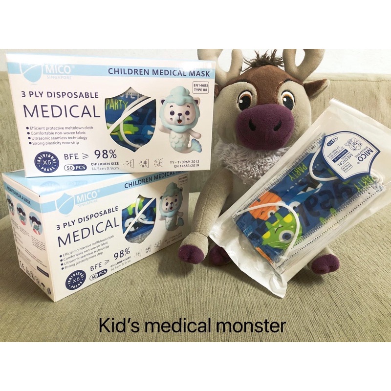 [SG BRAND] MICO Kids 3ply Medical Mask BEF>98% Child Disposable Face Mask
