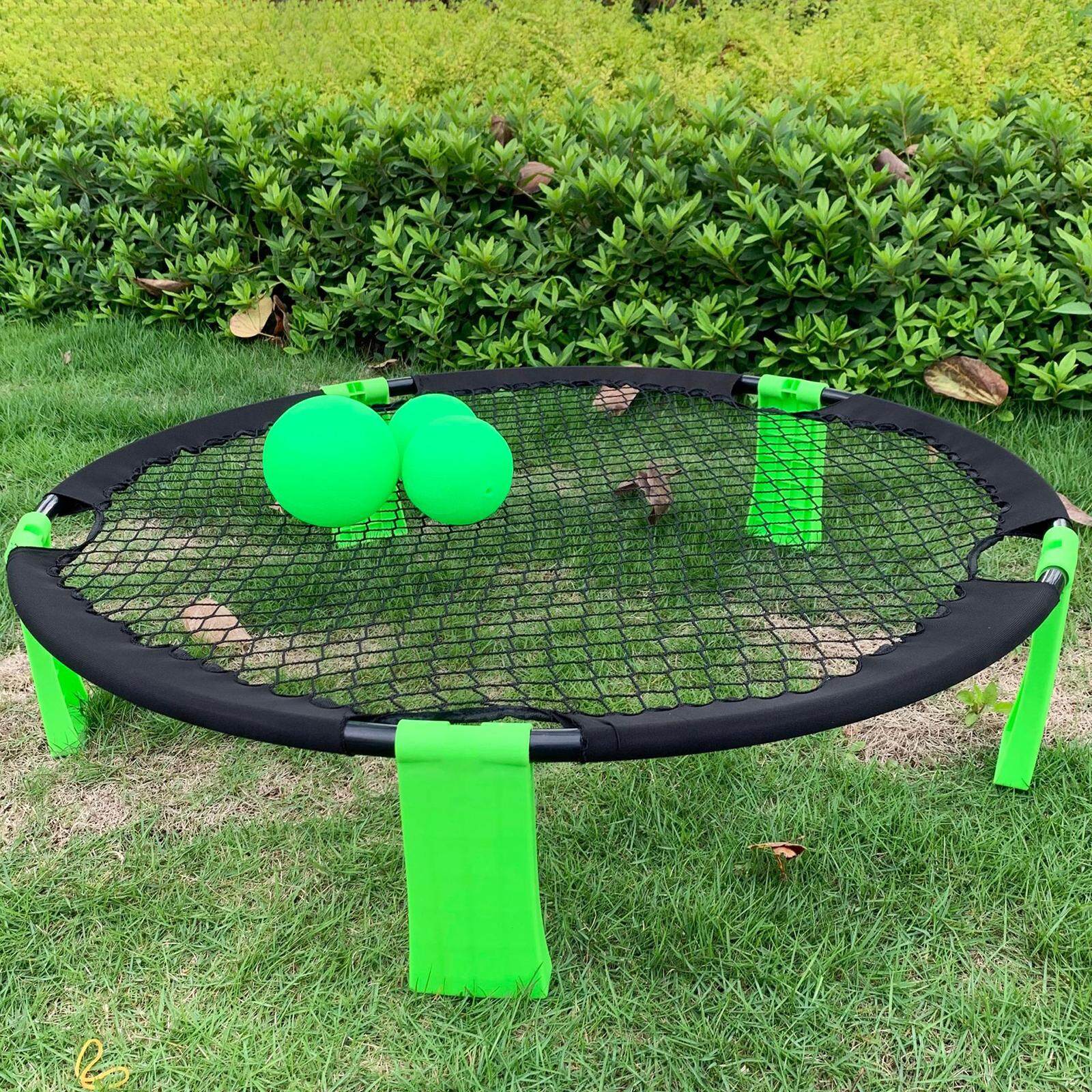 - Spike Game Set: Includes 1 x round net, 3x balls, 1x carrying case, and 1x inflating pump. An exciting outdoor lawn game for kids, teens, and adults!