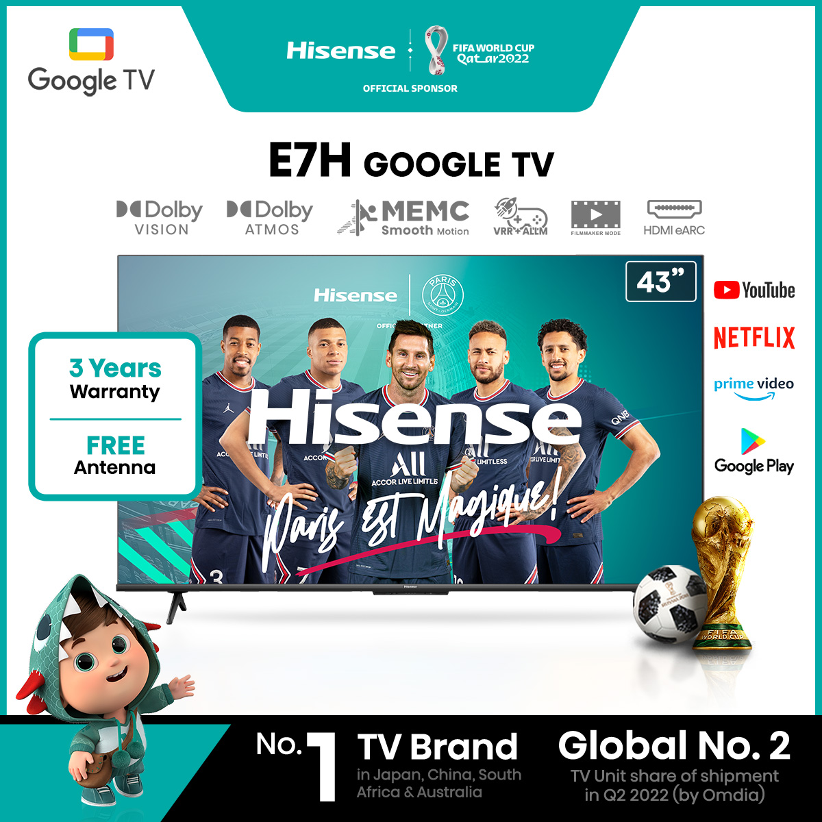 [New Launch] Hisense E7H 43'' Google TV | Dolby Vision | Dolby Atmos | MEMC | HDR 10 | VRR + ALLM | Dual Wifi 2.4+5G | Bluetooth 5.1 | HDMI (eARC)