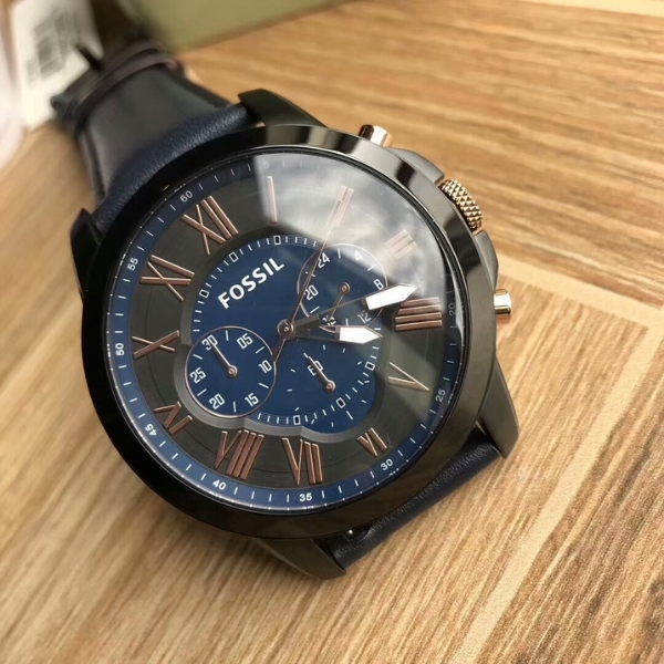(SG LOCAL) Fossil FS5061 Grant Chronograph Leather Strap Men Watch