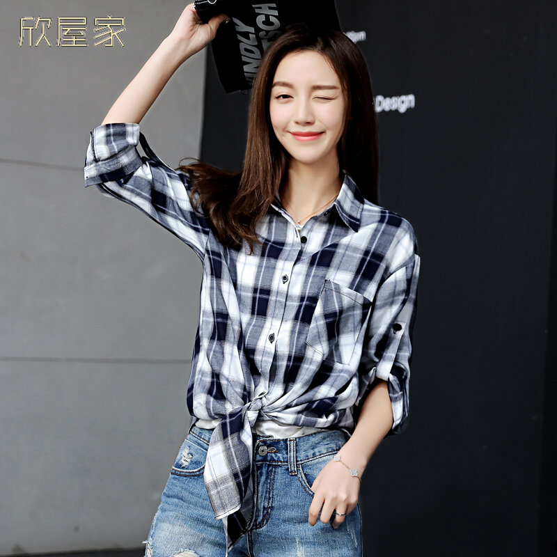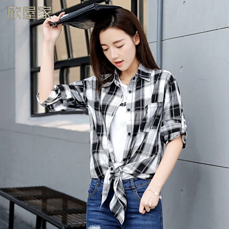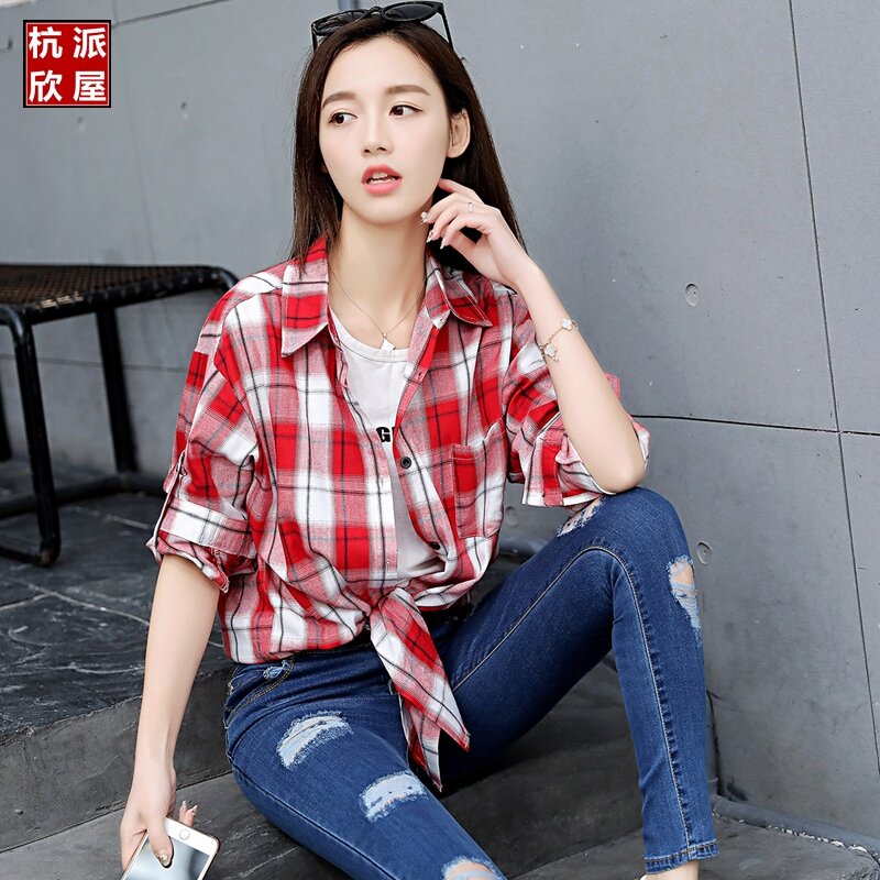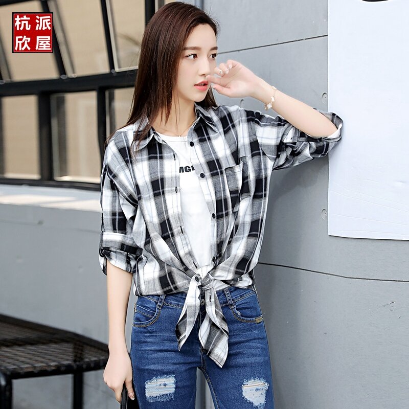 2022 Spring and Summer New High-End Cotton Plaid Shirt Women's Mid-Length Retro Temperament Loose Slimming Long Sleeve Shirt