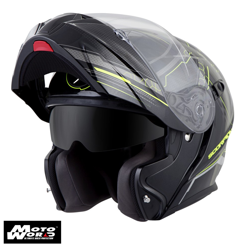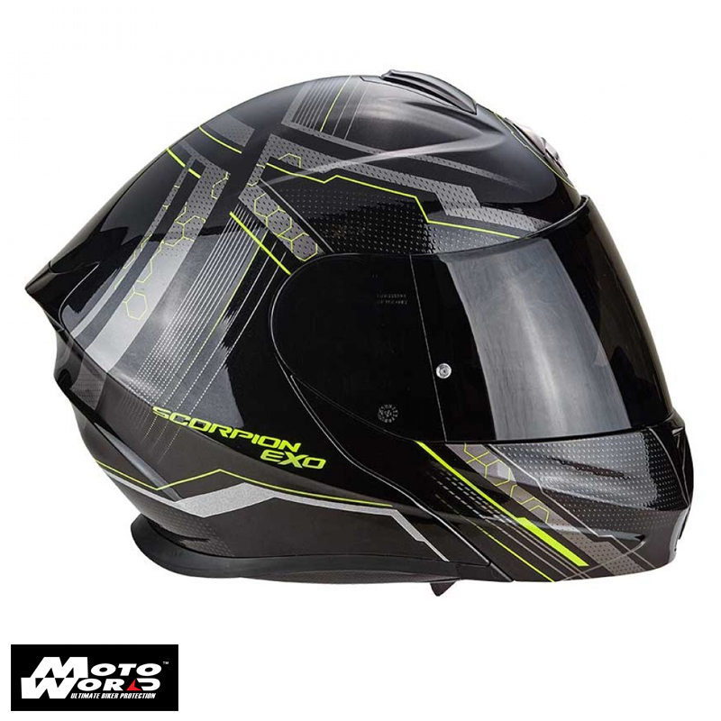 The ScorpionExo face shields for 400s and 700s have differentcleaning procedures for inside and outside. The outside is coatedwith an anti-scratch coating which prevents minor scratches, butcannot resist heavy wiping and cleaning without preliminarysoftening of the dirt, grime and bugs first. Note the damp towelmethod of softening dried bugs and dirt above. Plastic polisheswork fine to clean the outside of the shield as long as the dirtand grime has been softened and removed first. The inner Everclear™no-fog coated face shields require special treatment for cleaning.We suggest using a warm water and mild soap combination followed by"pat drying" with a dry towel. "Wiping" may cause premature wearand scratching on the Everclear™ innercoating.