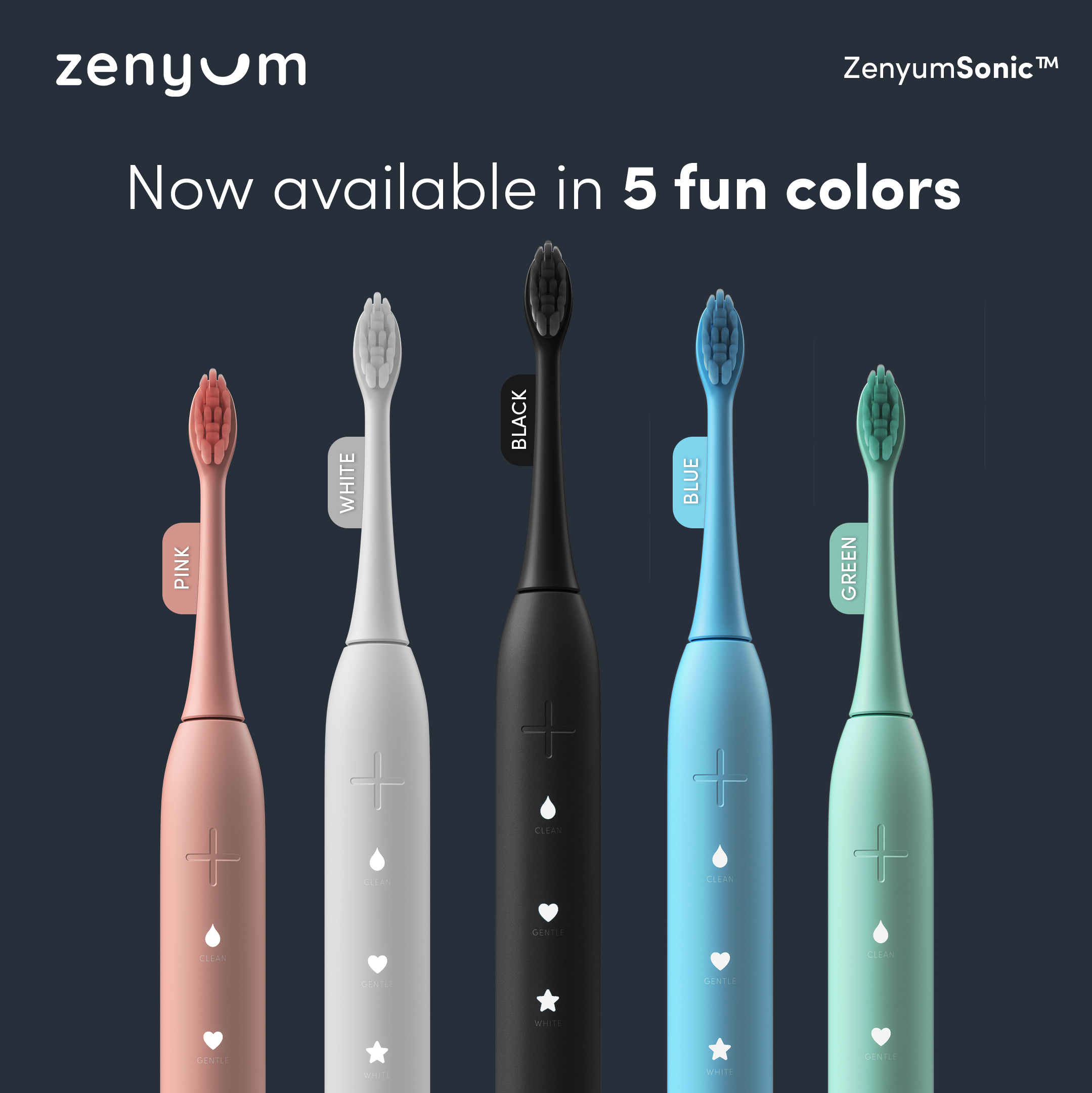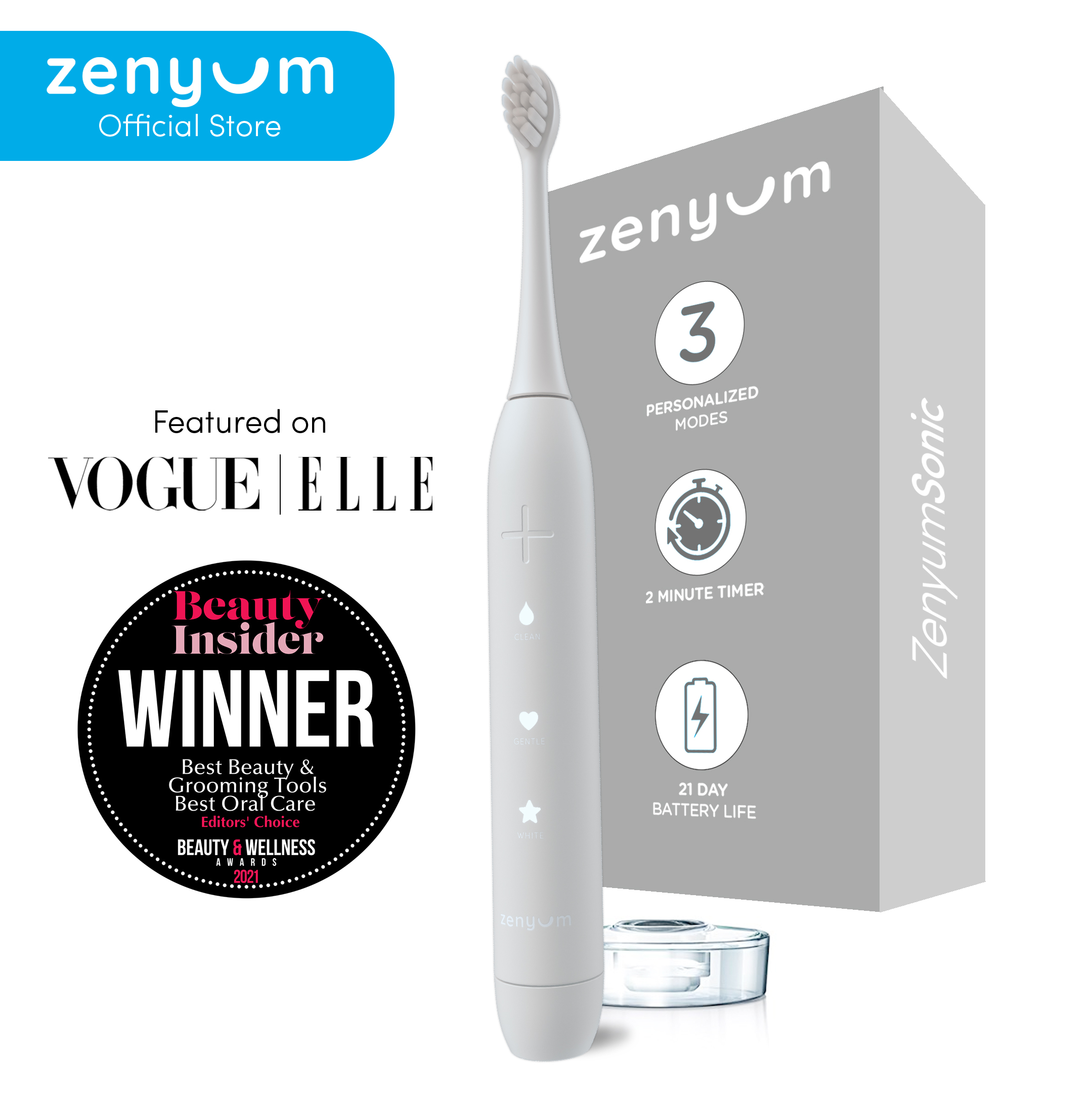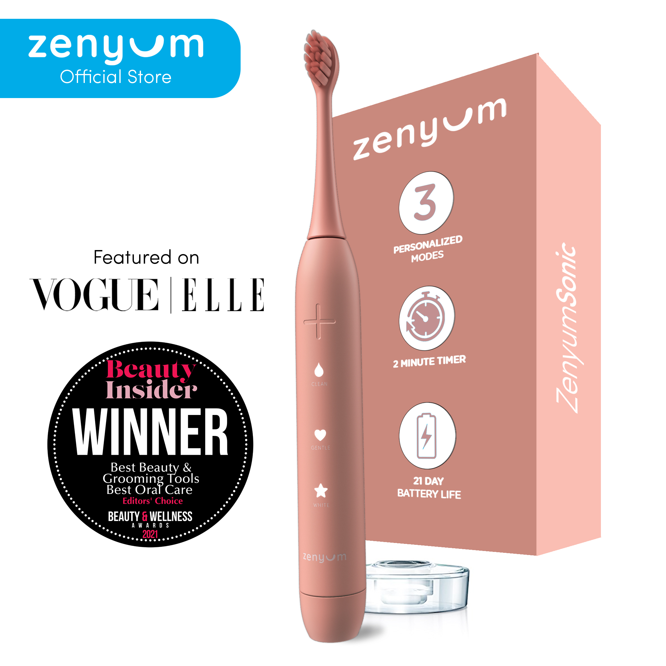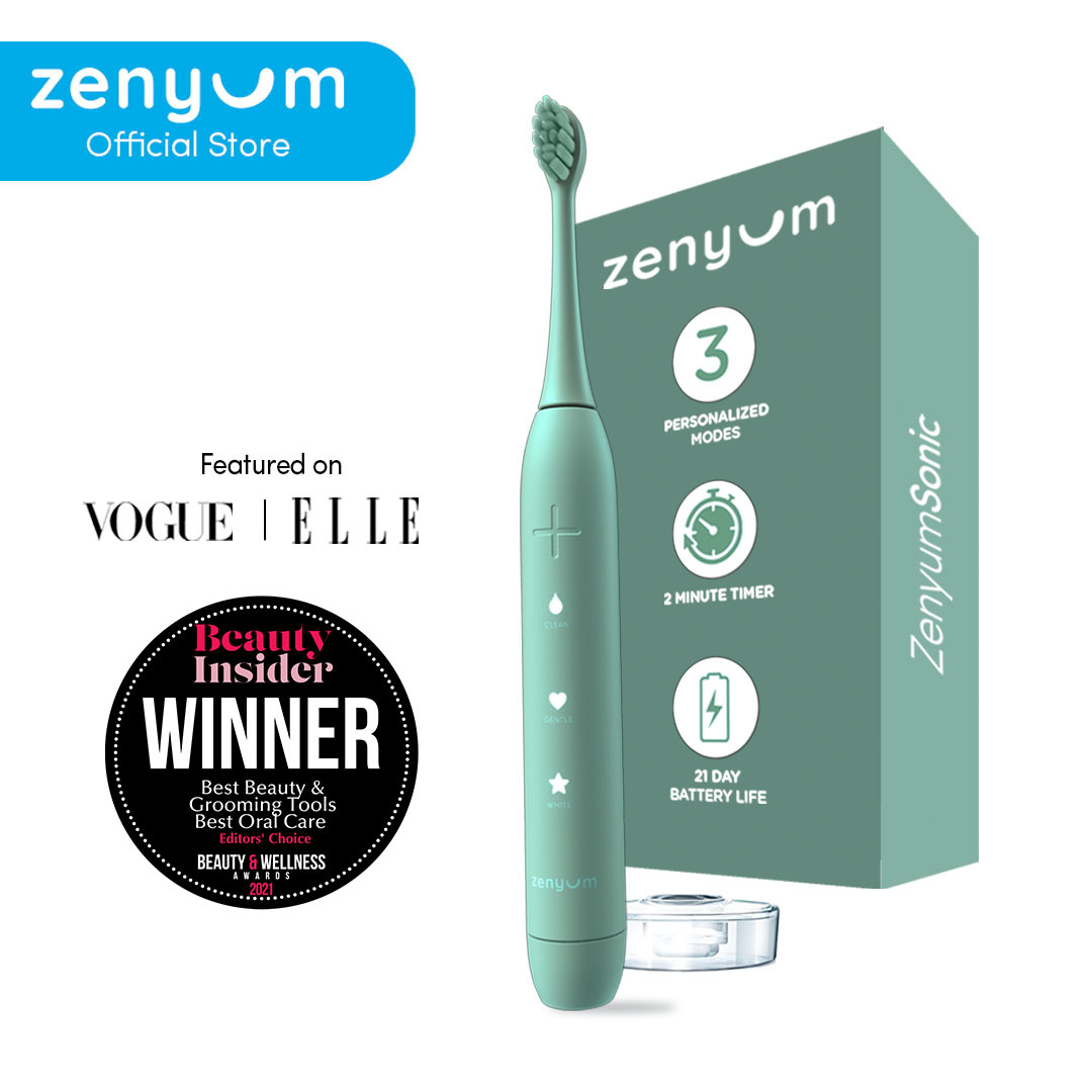ZenyumSonic Electric Toothbrush - Matte Black/White/Pink (Designed in Singapore/ 33,000 Sonic Vibrations/ 2-Minute Quad Interval Timer/ 3 Modes: Whitening, Gentle & Deep Cleaning/ Good for Braces & Te