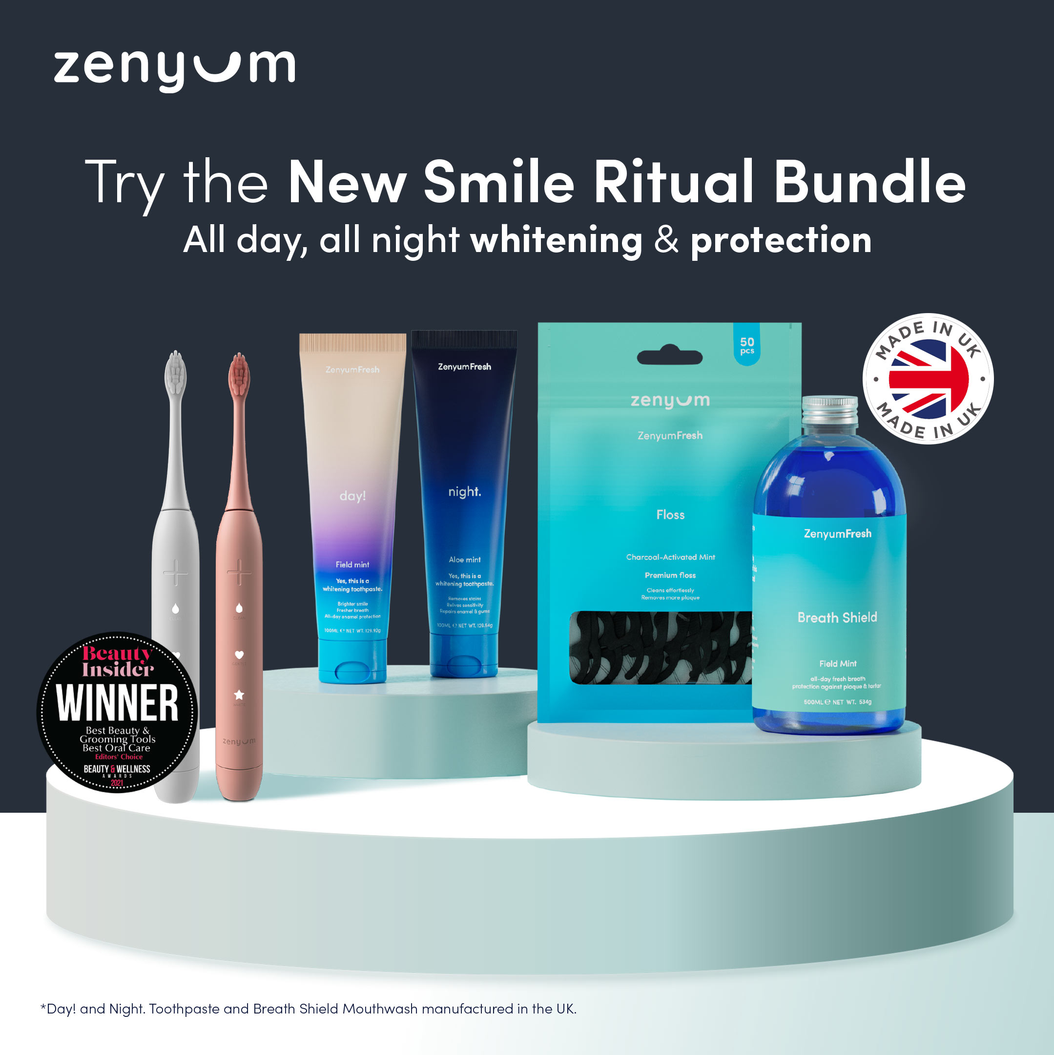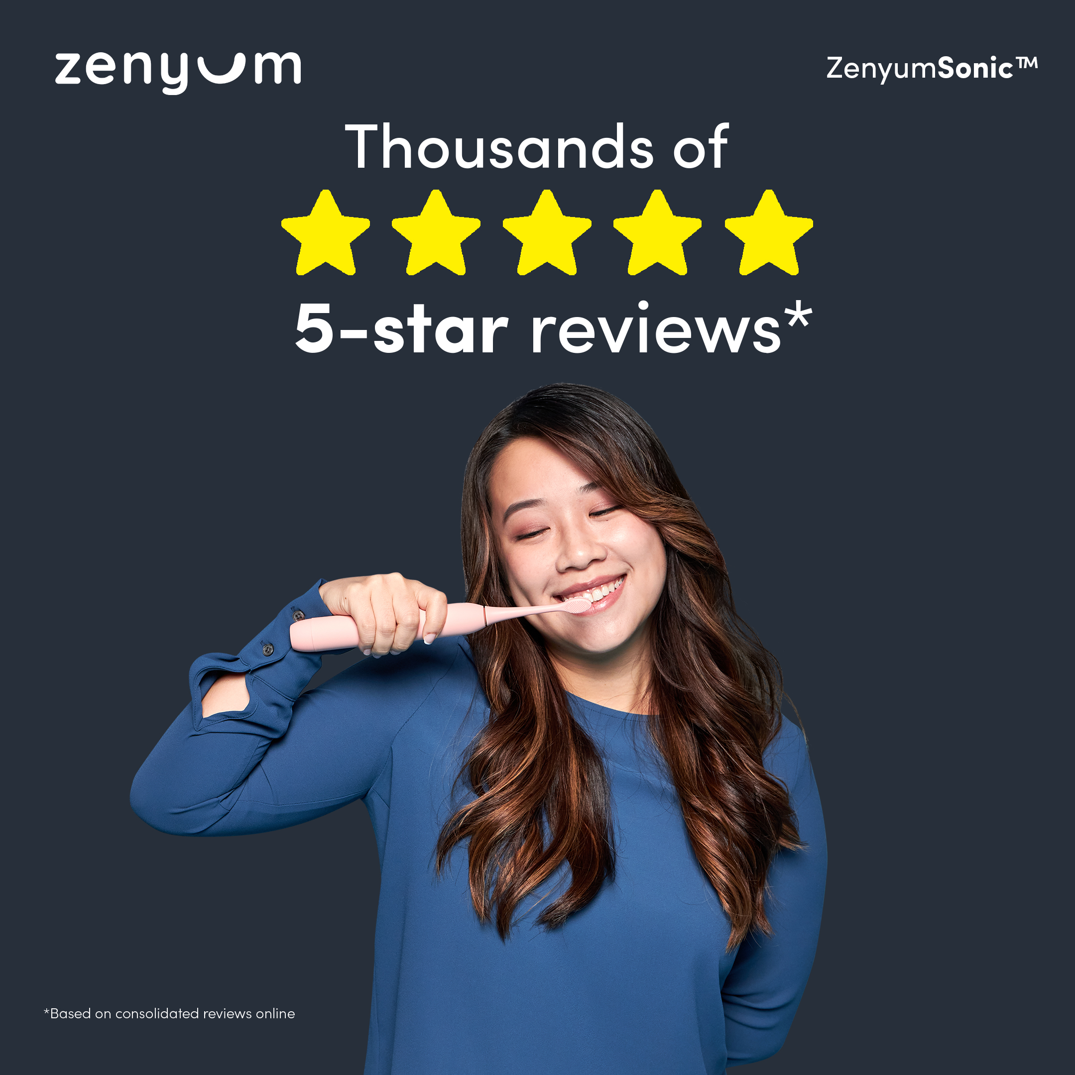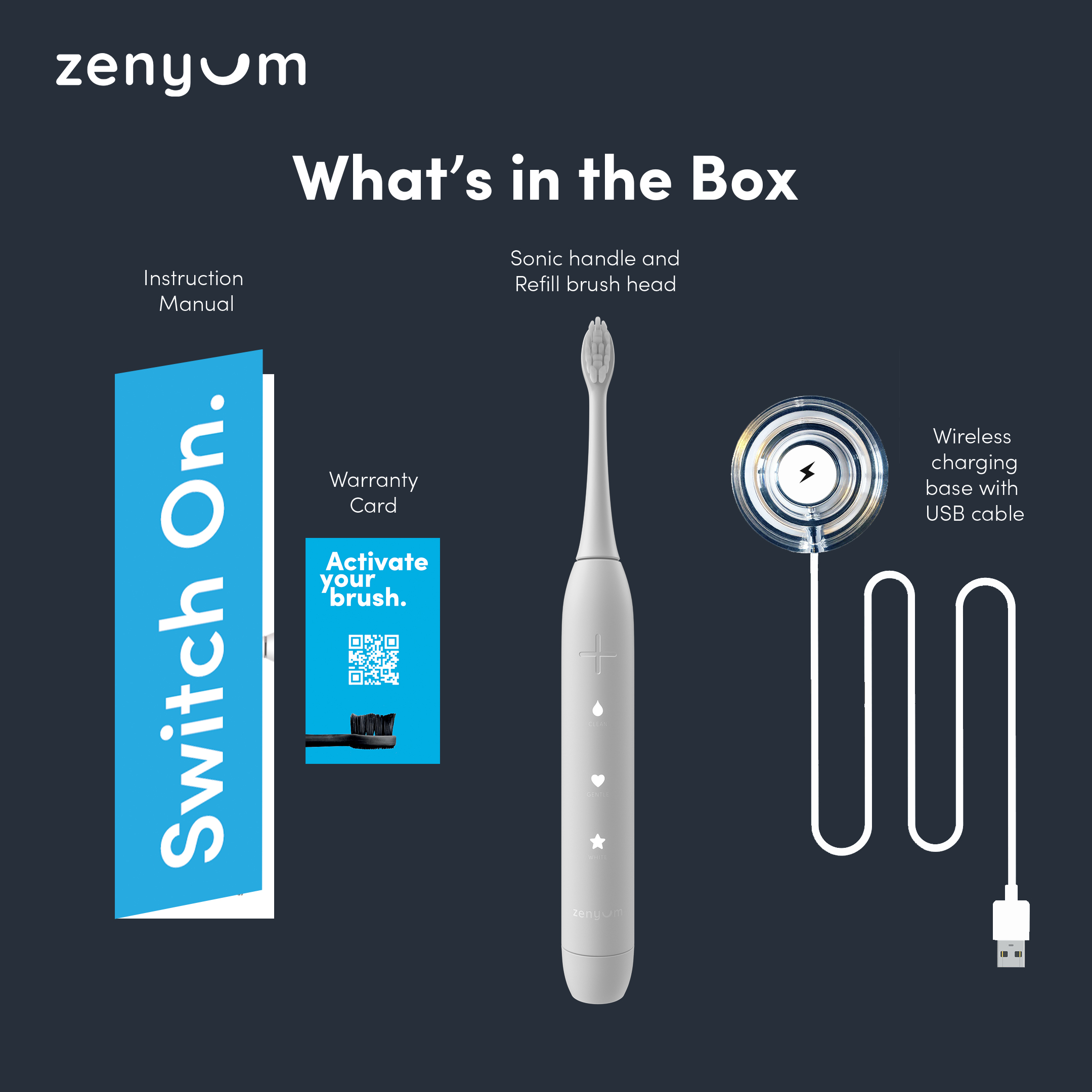 ZenyumSonic Electric Toothbrush - Matte Black/White/Pink (Designed in Singapore/ 33,000 Sonic Vibrations/ 2-Minute Quad Interval Timer/ 3 Modes: Whitening, Gentle & Deep Cleaning/ Good for Braces & Te