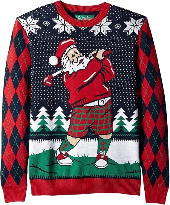 The Ugly Sweater Co. Mens Sports Golf Sports Ugly Christmas Sweater for Holiday Fun Design, Snug Fit Breathable Crewneck