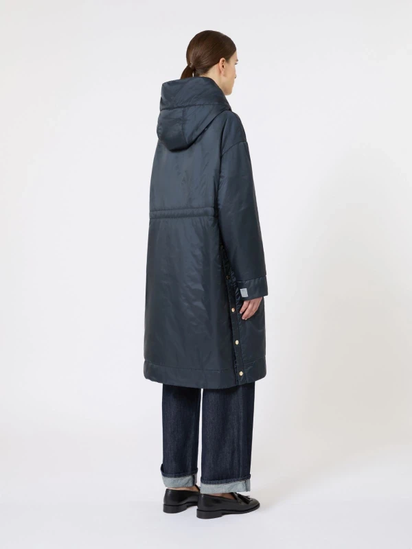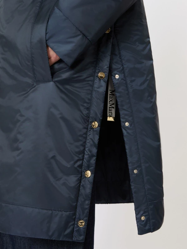 Midi parka with internal drawstring at the back waist and side slits with logo snap buttons.